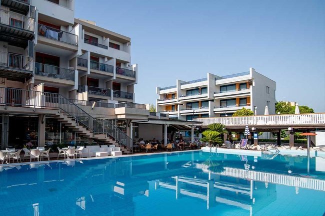 ristorante, bar, docce calde in spiaggia, bar in spiaggia. Ascensore presente solo per raggiungere le camere, non presente per gli appartamenti.