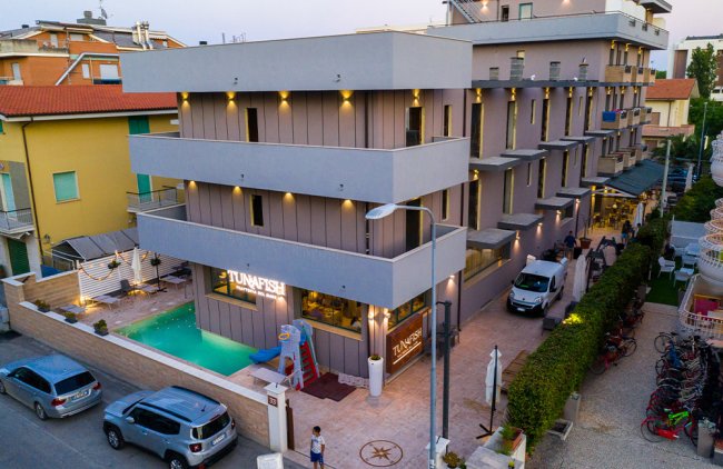 I servizi inclusi nel prezzo :acqua ai pasti, aria condizionata, rete Wi-Fi, frigobar,cassaforte,piscina, parcheggio e spiaggia privata con 1 ombrellone e 2 lettini a camera. A disposizione per i clienti bici e tandem a noleggio Tutte le stanze sono dotate di confort: balcone, TV, cassaforte, frigobar, phone, box doccia e aria condizionata.