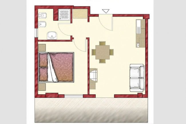 Alloggio in muratura dal piano terra al 3° piano; aria condizionata (su richiesta e a pagamento in loco); area giorno con angolo cottura e frigo con freezer; cassaforte; tv-led (32 pollici); 1 camera con letto matrimoniale; divano letto doppio in area giorno; bagno con doccia e bidet, asciugacapelli. Balcone arredato con tavolo e sedie. Non tutti gli alloggi sono dotati di aria condizionata. ATT.NE!!!: IN CASO DI N° 2/3 OCCUPANTI POTREBBE ESSERE ASSEGNATO UN ALLOGGIO BILOCALE CON N° 2/3 POSTI LETTO.