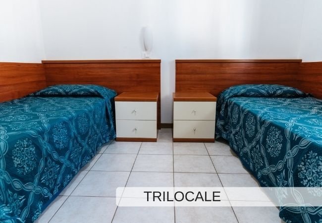 TRILOCALI FINO A 7 PERSONE camera matrimoniale, camera doppia con letti singoli e a castello, divano letto, angolo cottura, box doccia, balcone arredato.