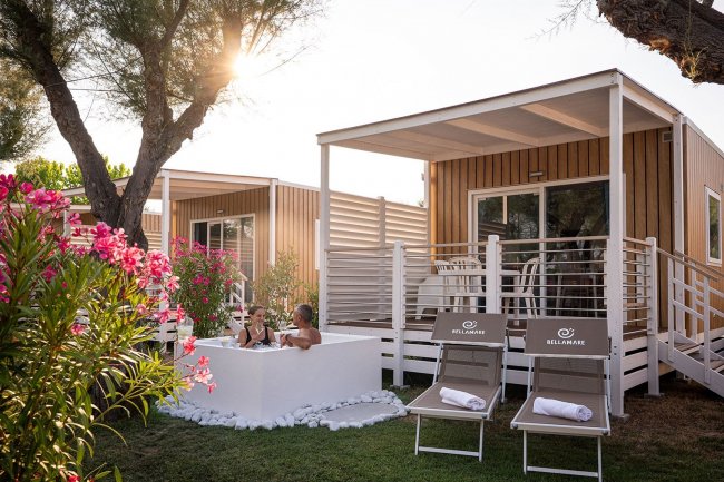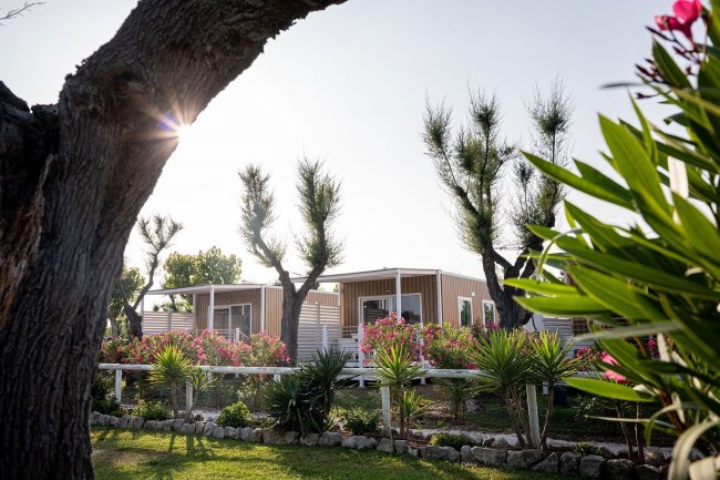 BUNGALOW BILOCALE E TRILOCALE FINO A 5 PERSONE alloggi con aria condizionata, soggiorno con angolo cottura e dinette, tv, camera matrimoniale con letto alla francese, bagno con box doccia, veranda privata. Per i trilocali dispongono di una seconda camera da letto. Sistemazioni vicino al mare ed al cuore del villaggio.