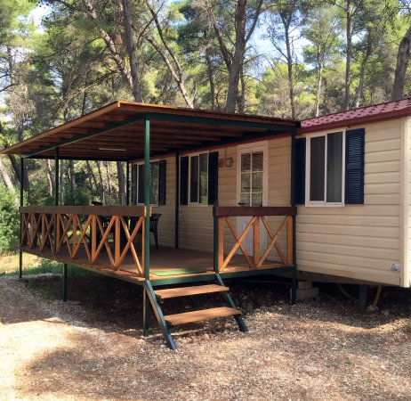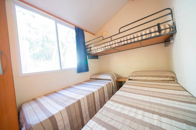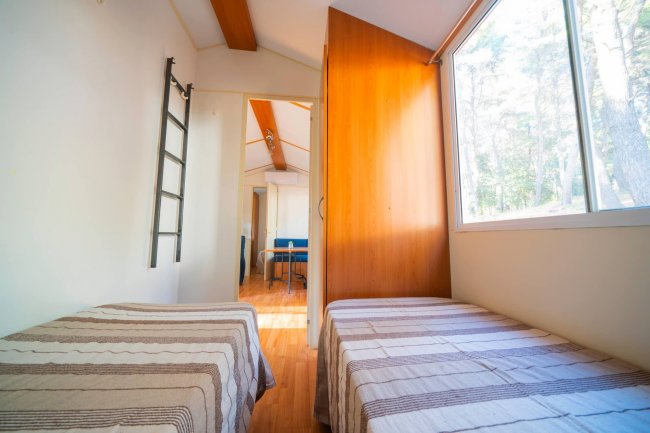 4+1 posti: con area giorno, angolo cottura, divano letto singolo, camera matrimoniale, camera con due letti singoli, bagno con doccia e veranda esterna. Alcune tipologie hanno l'aria condizionata.