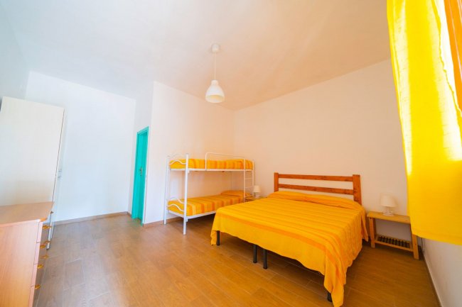 Trilocali 5 posti: con area giorno, angolo cottura attrezzato e divano letto, camera con letto matrimoniale, camera con letto a castello, bagno con doccia e veranda esterna, aria condizionata non disponibile.