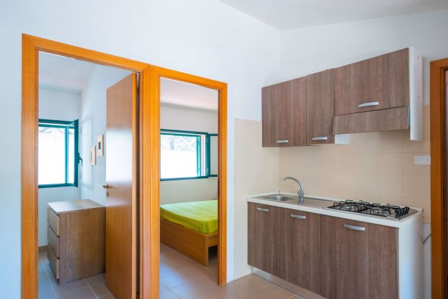 Monolocali da 2 a 4 posti: con angolo cottura attrezzato, letto matrimoniale e letto a castello in un unico ambiente, bagno con doccia e veranda esterna, aria condizionata a pagamento;